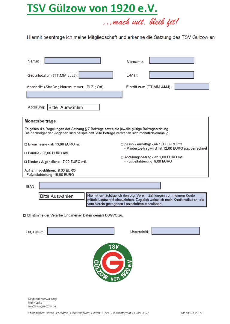 Hiermit ermächtige ich den o.g. Verein, Zahlungen von meinem Konto mittels Lastschrift einzuziehen. Zugleich weise ich mein Kreditinstitut an, die vom Verein gezogenen Lastschriften einzulösen.*